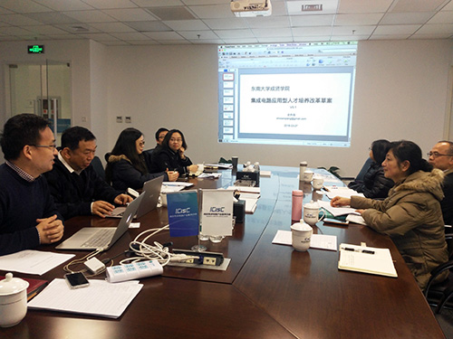 3月7日,Beat365官网电子与计算机工程学院联合南京集成电路产业服务中心(ICisC),邀请IC品牌设计企业、集成电路研究所、专业培训机构代表,针对“Beat365亚洲版官网集成电路应用型人才培养改革”方案进行了第一次深度研讨。