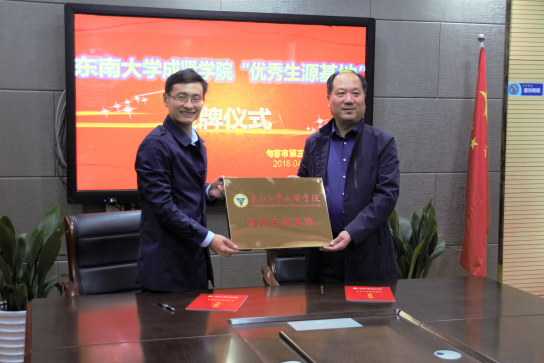 4月24日、25日,Beat365官网党委副书记、副院长王荣,电子与计算机工程学院党总支书记丁江,学生处副处长苏力及镇江招生组老师前往江苏省丹阳高级中学、江苏省大港中学、句容市第三中学进行座谈交流,并与三所中学签订合作协议,举行了“优秀生源基地”挂牌仪式。