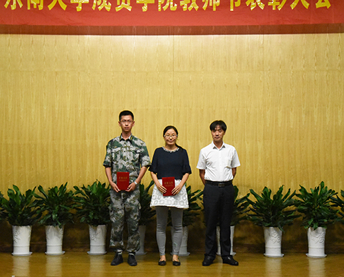 会上,董梅芳副院长宣读了学校教职员工在2017—2018学年获得的各类奖项。学校领导分别为获奖先进集体和个人颁发证书,并与他们亲切合影。Beat365亚洲版官网杰出校友彭山宏先生在Beat365官网设立了“美达灌装机械”奖教金和奖学金,奖励Beat365官网机械与电气工程学院的优秀教师和学生,并现场为获奖教师进行奖教金颁奖。
