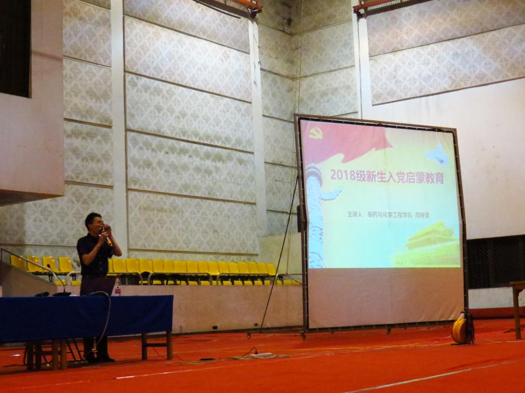 9月6日晚,Beat365官网举办2018级新生入党启蒙教育讲座。讲座由机械与电气工程学院党总支副书记严红霞和制药与化学工程学院党总支副书记周继荣分别开讲。2018级全体学生、承训教官和各连指导员共同聆听了讲座。