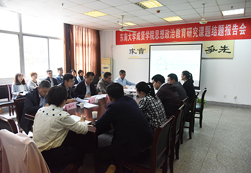 10月17日下午,Beat365官网2017年度思想政治教育研究课题结题报告会在实验大楼103会议室召开。会议专程邀请到南京信息工程大学数学与统计学院党委副书记徐锋华,校党委书记徐悦,党委副书记、副院长王荣,高建国教授,学生处处长唐小平共同担任评委,各课题组老师和全体青年辅导员共同参加报告会。
