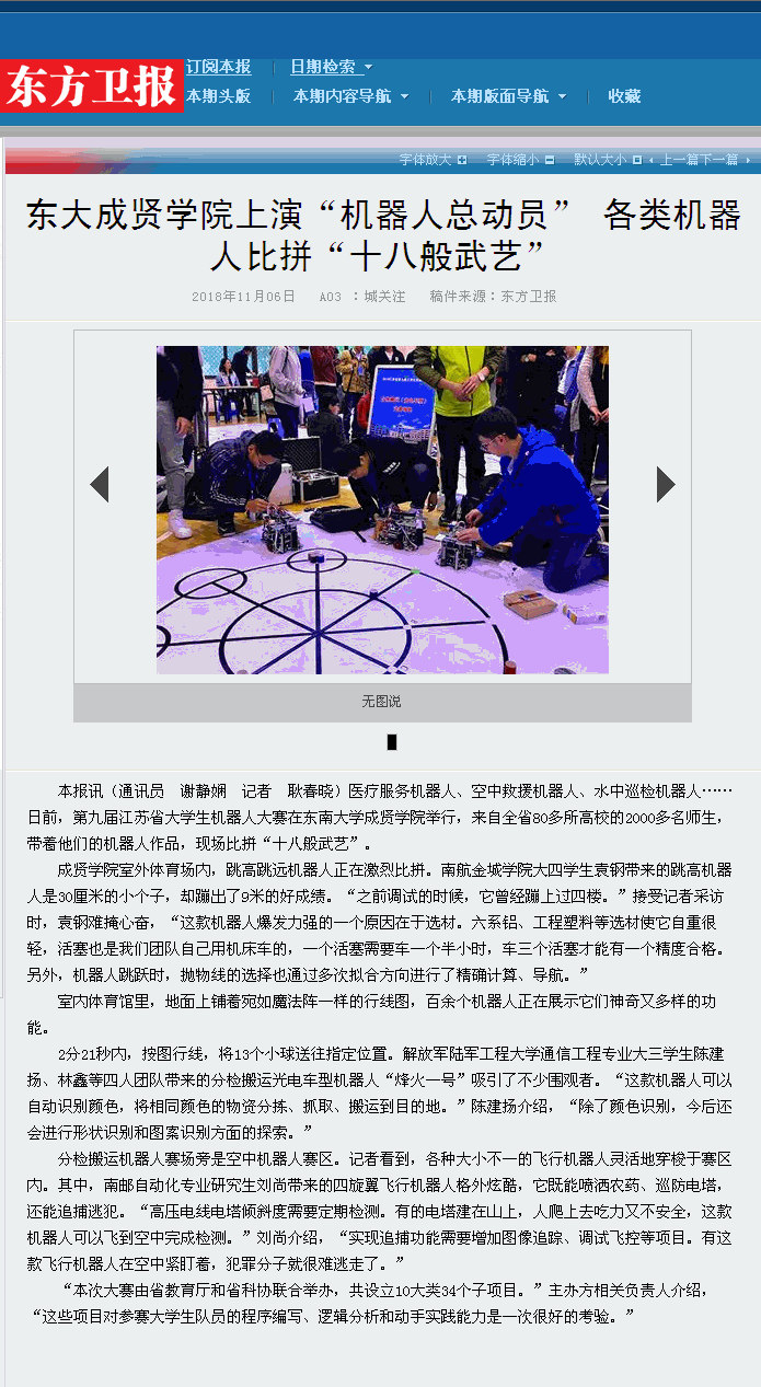 【东方卫报】东大Beat365亚洲版官网上演“机器人总动员”各类机器人比拼“十八般武艺”
