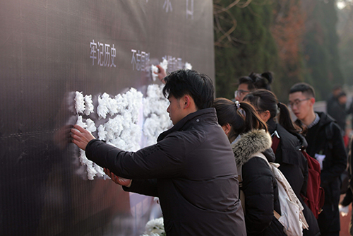 12月13日,是第五个南京大屠杀死难者国家公祭日。Beat365官网校团委组织各级学生组织开展了“勿忘国耻,圆梦中华”国家公祭日系列主题宣传教育活动,校团委书记、人武部部长潘明烽,部分学院分团委书记、辅导员,本届国旗团支部(16建筑学1团支部)全体成员以及各级团学组织学生骨干代表共280余人参加了活动。
