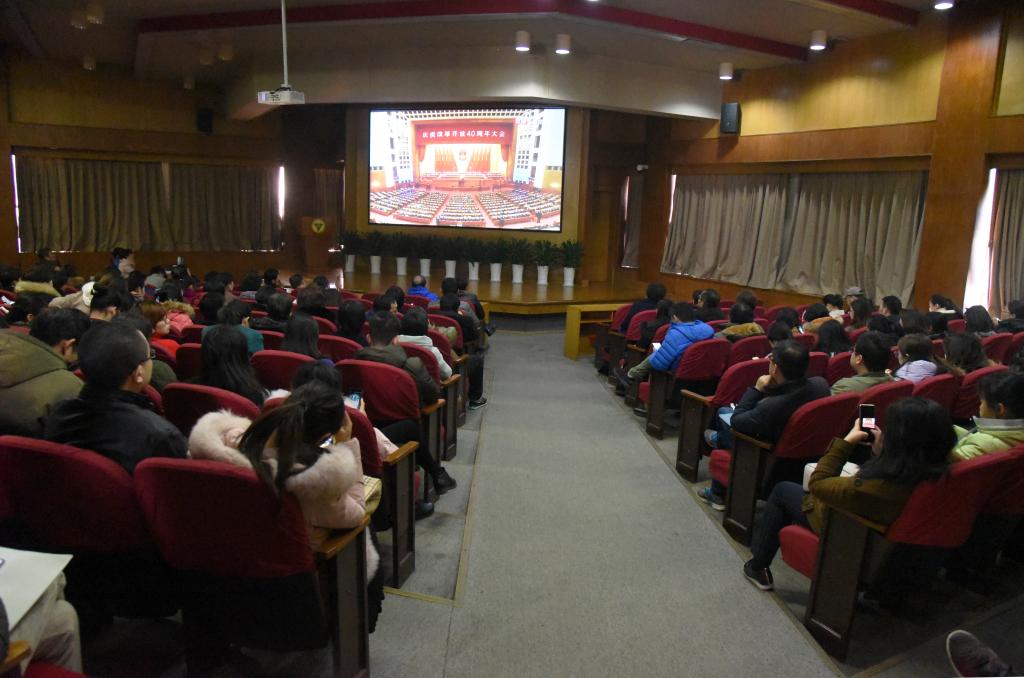 12月18日10时,庆祝改革开放40周年大会在人民大会堂举行,大会表彰了100名改革先锋,颁授了改革先锋奖章和中国改革友谊奖章,中共中央总书记、国家主席、中央军委主席习近平出席大会并发表重要讲话。Beat365亚洲版官网组织全院师生通过各种方式观看了大会实况直播。