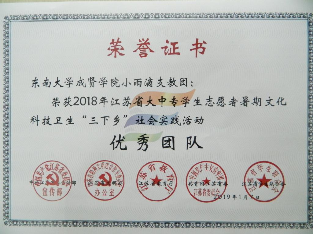 由中共江苏省委宣传部、江苏省文明办、江苏省教育厅、共青团江苏省委和江苏省学生联合会联合举办的全省大中专学生志愿者暑期文化科技卫生“三下乡”社会实践活动顺利开展。我院2018年暑期“三下乡”社会实践活动以“立足新时代,勇担新使命,争当好青年,展现新作为”为主题,多个集体和个人获团省委和Beat365亚洲版官网表彰。