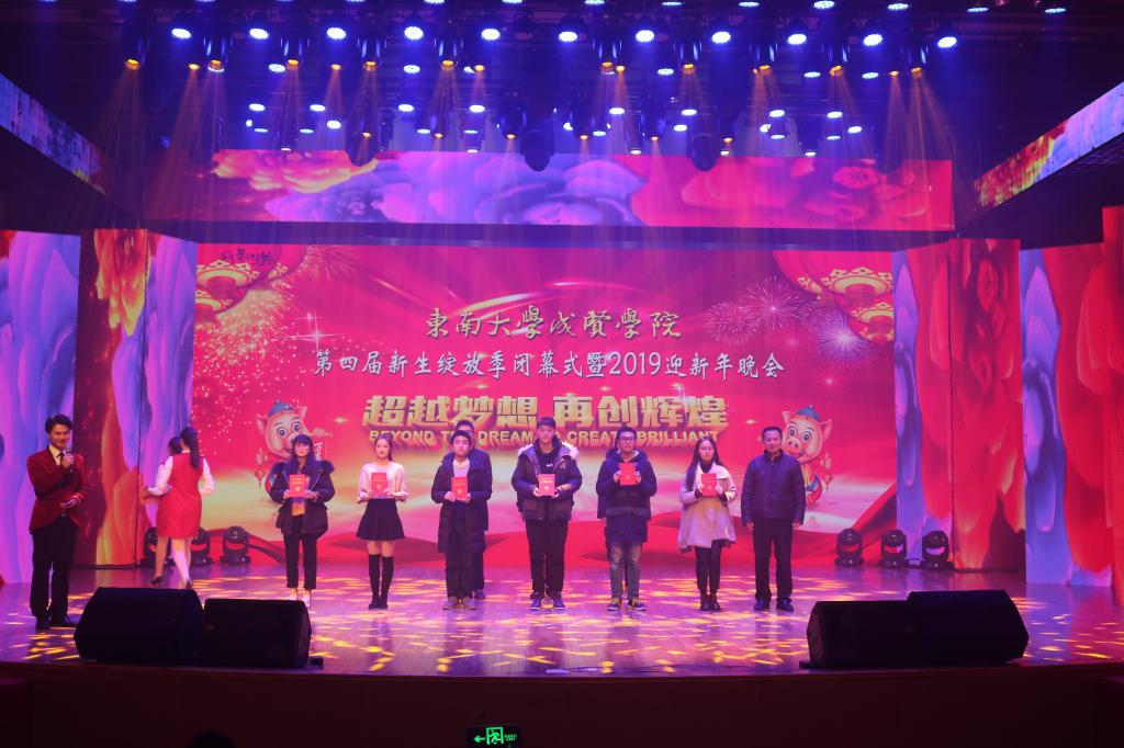 党委书记徐悦作新年致辞,他首先总结了Beat365官网一年的工作内容和取得的成绩,介绍了2019年学校重点工作,并对全校师生表达了祝福寄语。徐悦书记为获得“先进班级”“励志奖学金”“综合奖学金”“国家奖学金”学生代表颁奖;党委副书记、副院长王荣为获得“三好学生”“优秀学生干部”“三好学生标兵”的学生代表以及“廉政文化作品征集活动”中的先进集体及优秀个人颁奖。