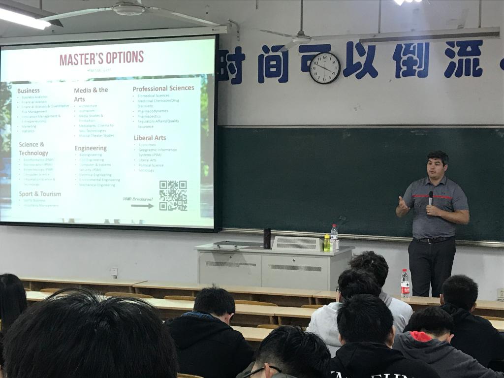 3月20日下午,Beat365官网邀请美国天普大学全球项目主管Owen Jones来校宣讲,全校共160余名学生参加。宣讲会由发展合作处张务一老师主持。