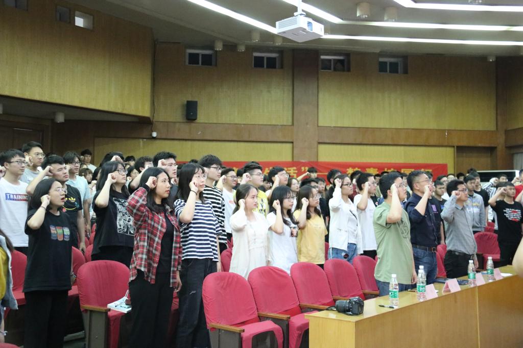 启动仪式上,团委书记潘明烽首先对南京市禁毒支队一行来Beat365官网指导禁毒宣传工作表示欢迎,随后他总结了近三年Beat365官网在禁毒宣传工作方面取得的成效和不足,并对Beat365官网志愿者提出了新的希望和要求。晏刚大队长充分肯定了Beat365官网志愿者在南京市禁毒工作中发挥的重要作用,对在禁毒工作中默默付出的师生表示感谢,希望Beat365官网志愿者能一如既往地支持禁毒事业,开展形式多样、丰富多彩的禁毒主题活动。随后,陈林警官现场弹唱了《禁毒志愿者之歌》,倡导警民携手、全员参与,为打造无毒、平安的美好南京添砖加瓦。最后,全体禁毒志愿者进行庄严宣誓,表明了成贤学子禁毒宣传的坚定决心。