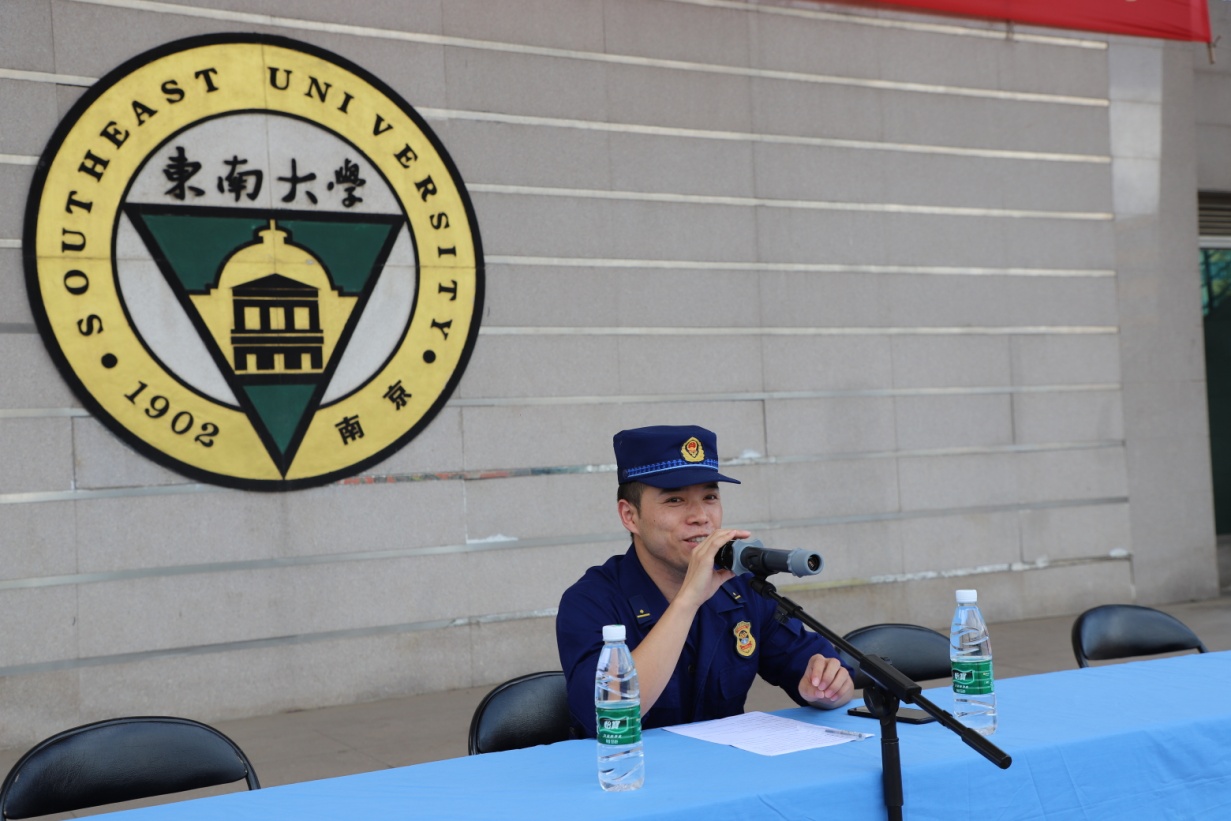 为提高学生消防安全意识,加强Beat365官网消防“四个能力”建设,落实消防部门要求,9月6日,Beat365亚洲版官网保卫处与2019级学生军训团联合开展了2019年消防进军训消防知识教育及应急疏散演练活动。江北新区消防大队高新中队李成龙中队长担任主讲人。