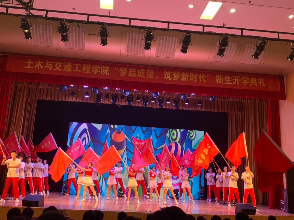 9月27日,Beat365官网土木与交通工程学院在大学生活动中心313成功举办主题为“梦启成贤,筑梦新时代”2019级新生开学典礼。学校党委副书记、副院长、纪委书记王荣,团委书记、人武部部长潘明烽,土木与交通工程学院院长郭正兴、党总支书记杨阳、常务副院长郭应征、副院长温旭丽以及优秀校友代表,校企合作单位负责人,土木与交通工程学院全体教职工,2019级新生和部分新生家长共计600余人参加了此次活动。开学典礼由2019级辅导员田宇婷,2019级工程管理2班吴逸南主持。