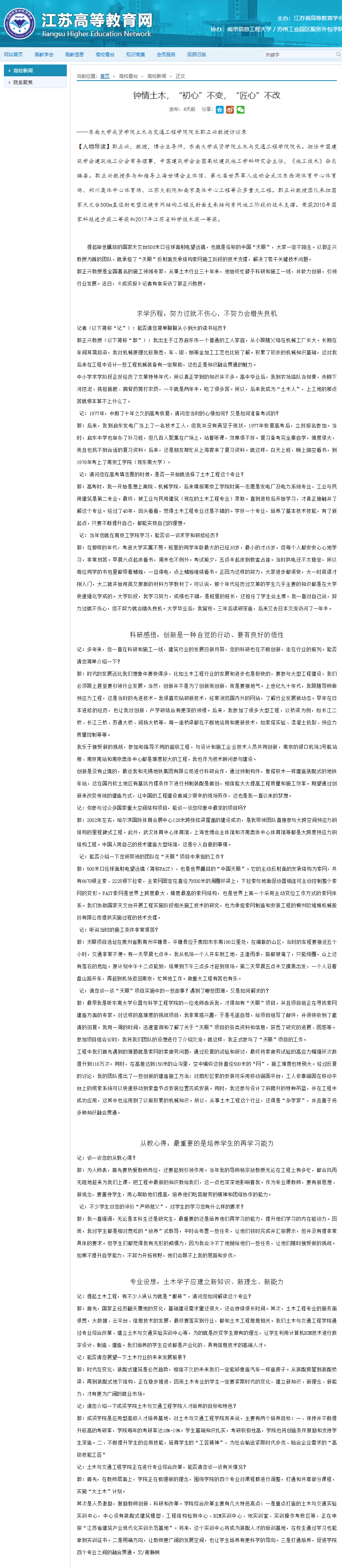 【江苏高等教育网】钟情土木,“初心”不变,“匠心”不改——Beat365亚洲版官网土木与交通工程学院院长郭正兴教授访谈录