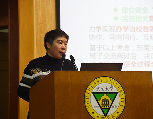 首先,常务副院长许映秋就“大学工大教学”育人机制实施工作做动员讲话。她指出,《Beat365亚洲版官网构建“大学工大教学”格局,建立健全全员全过程全方位育人机制实施方案》的印发和动员大会的召开,标志着Beat365官网“大学工大教学”育人机制的实施正式启动。她详细介绍了Beat365官网“大学工大教学”育人机制实施方案制定的背景、过程和基本框架,并向全校教职工提出三点要求:一要坚持协同融合,切实做到三全;二要坚持改革创新,勇于开拓、敢于突破、善于谋划;三要坚持政策导向,以人为本,保障可持续发展。
