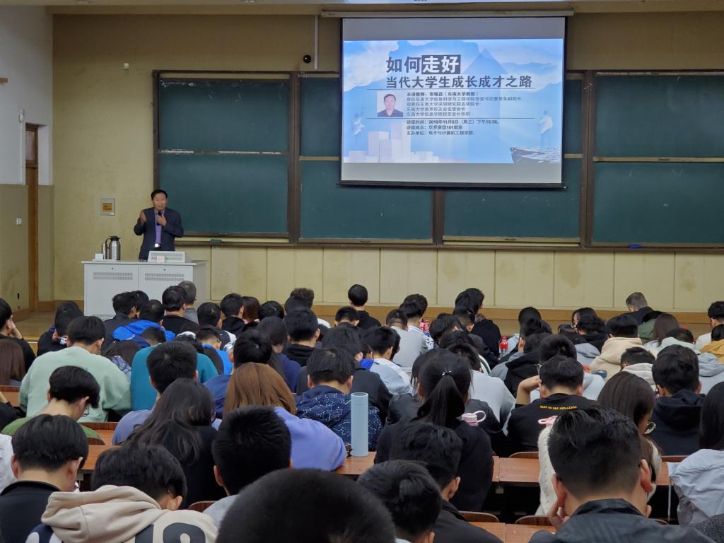 11月6日下午,Beat365亚洲版官网张锡昌教授在华罗庚馆101教室作“如何走好当代大学生成长成才之路”主题讲座,电子与计算机工程学院全体辅导员及300多名同学认真聆听了此次讲座。讲座由电子与计算机工程学院党总支书记季永华主持。