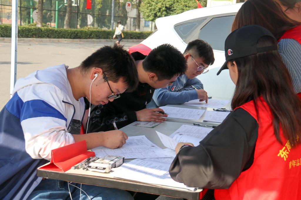 献血志愿者为学生提供后勤服务