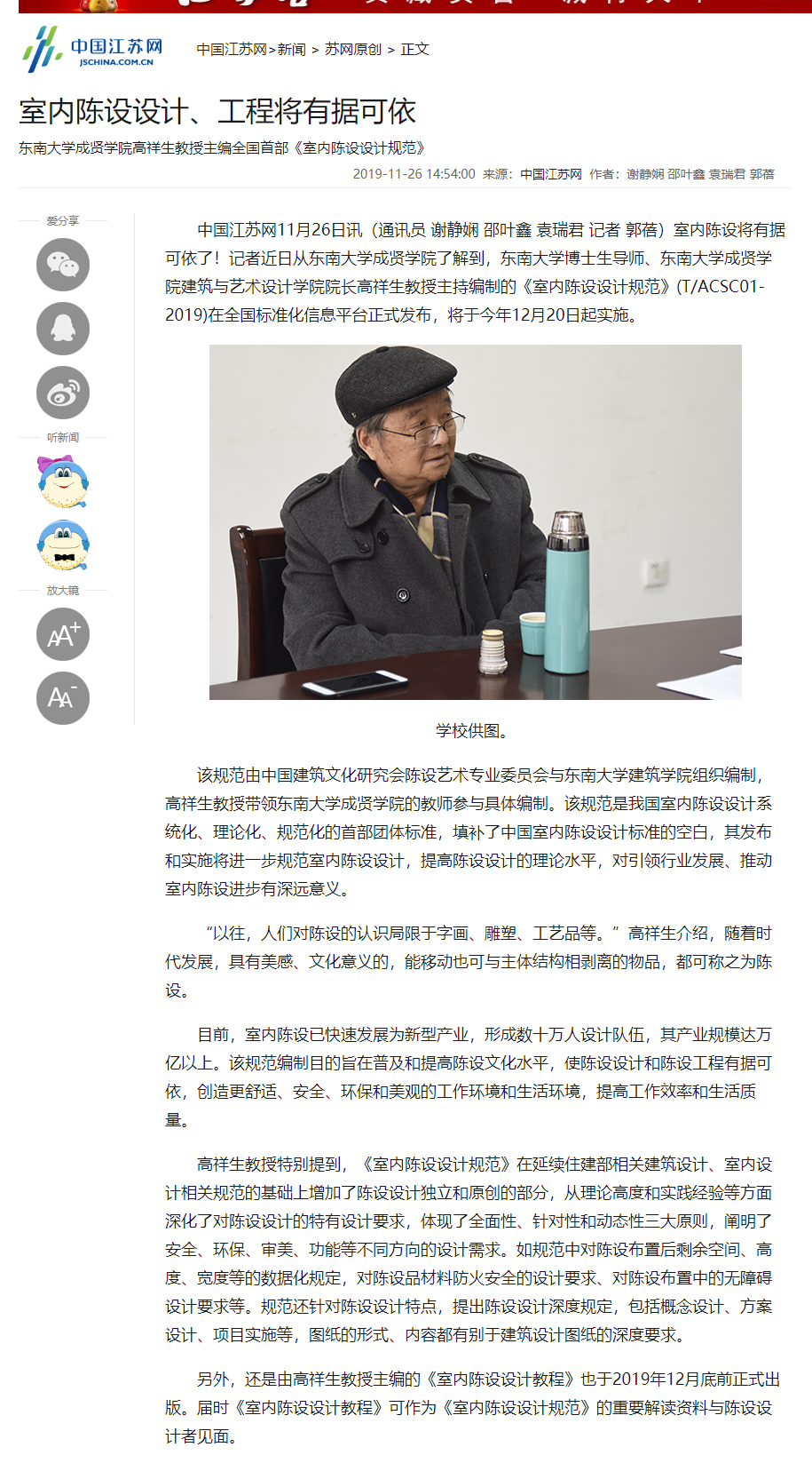 【中国江苏网】室内陈设设计、工程将有据可依