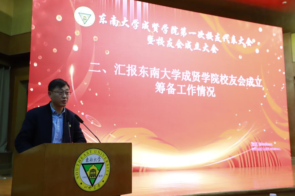 校友会筹备工作办公室副主任潘明烽汇报校友会筹备工作