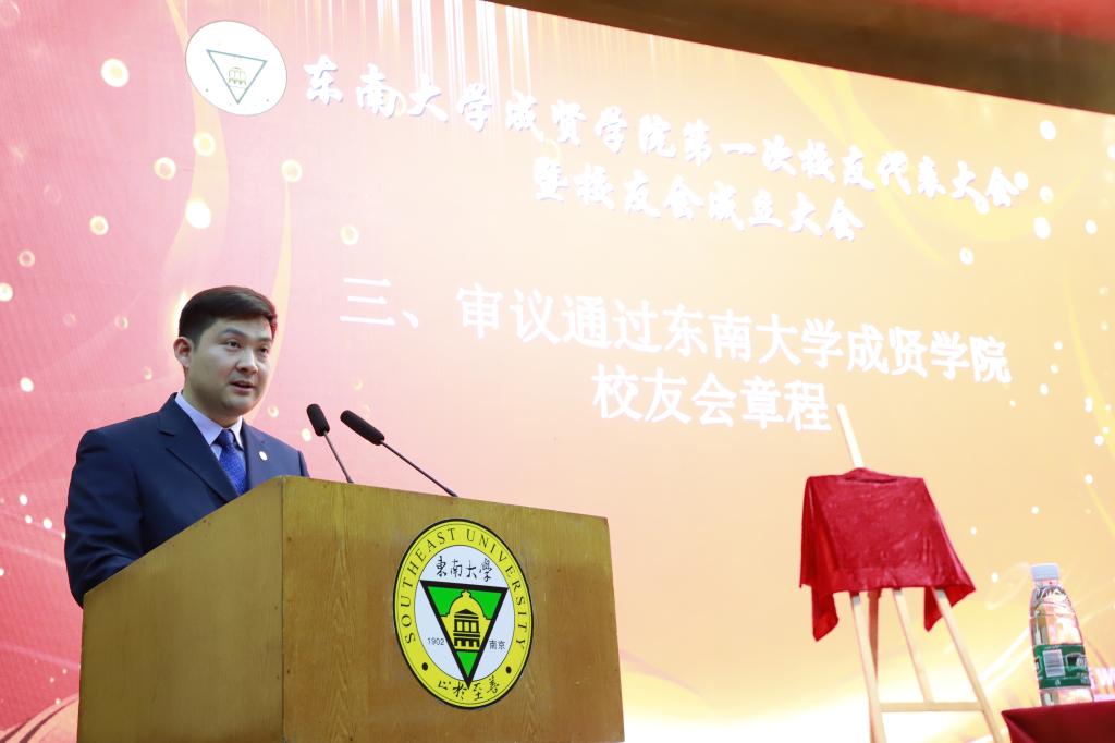 校友会筹备工作办公室秘书颜秉明宣读校友会章程