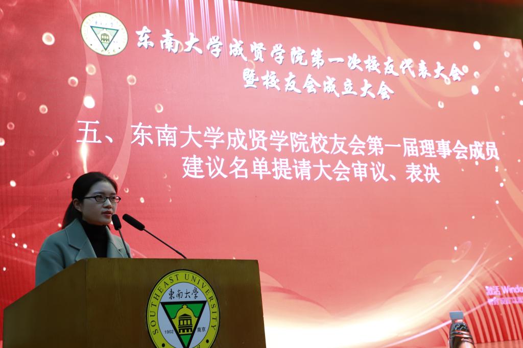 校友代表陈雪琼宣读第一届理事会成员建议名单