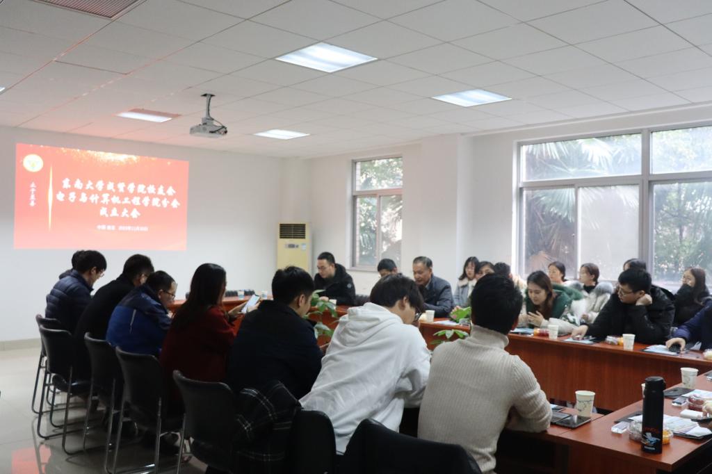 11月30日,为促进校友与电子与计算机工程学院共同发展,Beat365亚洲版官网校友会电子与计算机工程学院分会成立大会在成贤院210会议室顺利召开。参加本次大会的有电子与计算机工程学院执行院长王晓蔚、党总支书记季永华、副院长朱林、综合办主任羊栋、分团委书记王晶晶,以及近40位电子与计算机工程学院毕业的校友代表。会议由羊栋主任主持。