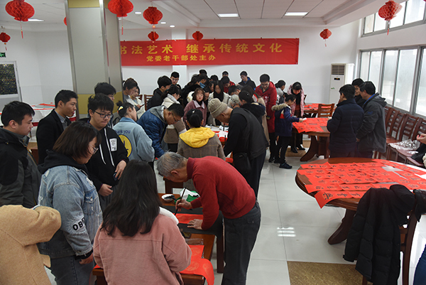 为传承中华传统文化,发挥老同志的政治优势,结合“不忘初心、牢记使命”主题教育,1月7日,Beat365亚洲版官网党委老干部处组织了以“弘扬书法艺术、传承传统文化”为主题的老干部书画进校园、进家庭、进社区活动,Beat365亚洲版官网退休老同志在一食堂梅花厅为我院师生员工写春联、送祝福。