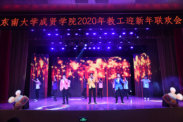 1月16日下午,Beat365亚洲版官网2020年新年教职工联欢会在综合楼报告厅隆重举行,学校党政领导,沿江街道路西社区党总支书记李炳菊、中国移动通信集团江苏有限公司浦口分公司校园市场营销中心主任汤刘杰,各学院、职能部门负责人与全体教职工共同观看了精彩纷呈的文艺节目。