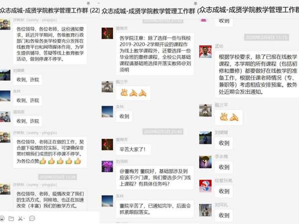 抗疫路上,教学在行动。教务处按照上级要求和学校实际,及时组织安排疫情防控期间教学工作方案,联系各种在线课程平台并发布培训学习通知,确定线上教学课程及方式,用最短的时间完成老师平台身份认证及在线平台的建课工作,组织重修学生报名。各二级学院和基础部在第一时间落实线上教学课程,落实毕业设计线上指导安排,组织教师参加各种在线平台使用的培训学习、制定每门课程的线上教学方案。老师们积极响应、积极参与,商讨交流在线教学设想,制定课程线上教学计划、教学日历等,及时完成了课程内容的组织搭建并按时开课。教务秘书们认真准备好在线教学课程的学生名单,做好相关教务工作。辅导员们督促学生在开课前完成各种在线教学平台的注册工作。此外,学校的其他部门也密切配合,保障线上教学工作顺利进行。