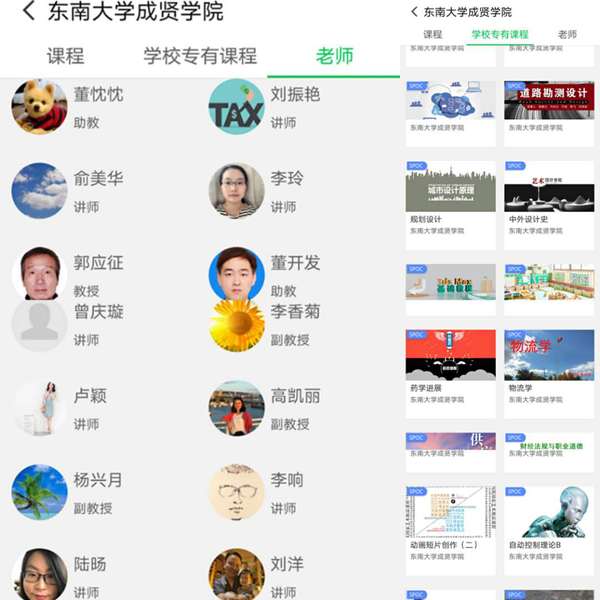 线上教学教师及课程(部分)