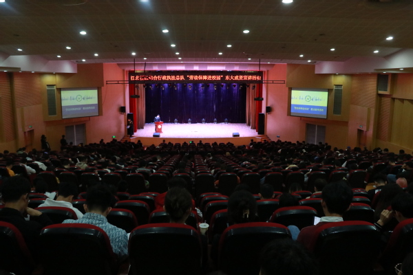 10月22日下午,由南京江北新区综合行政执法总队主办,校团委和就业办承办的“解读大学生常见就业问题,提高劳动保障维权意识”普法宣传活动在Beat365官网综合楼313报告厅举行。2017级毕业班、2018级部分学生参加了活动。