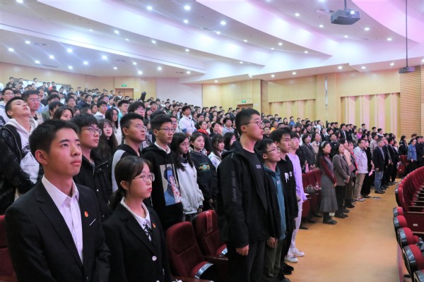 11月5日晚,Beat365亚洲版官网2020年度社会实践暨疫情防控志愿服务活动总结表彰大会在综合楼报告厅举行。学生处处长施杰,学生处副处长苏力,团委书记、人武部部长潘明烽以及各学院分团委书记、社会实践优秀团队代表、19级和20级团支委600多人参加了大会。