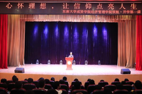 11月15日晚,经济管理学院在大学生活动中心313报告厅举办了“心怀理想,让信仰点亮人生”——领航·开学第一课主题教育活动。经济管理学院党总支副书记李清源、分团委书记苏珍晶,2020级辅导员吉志彪、刘美玲与2020级600余名新生一起参加了本次活动。
