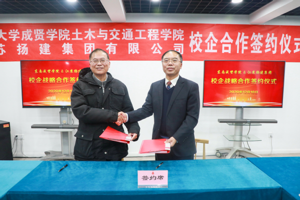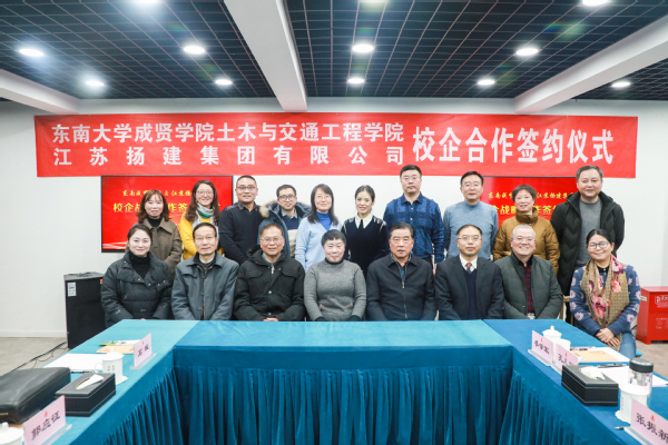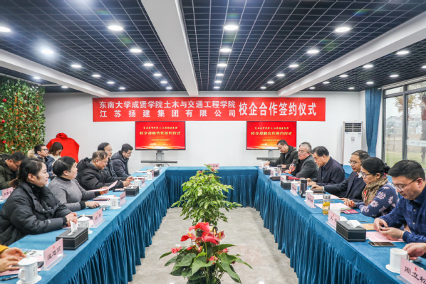 12月18日,土木与交通工程学院与江苏扬建集团有限公司校企合作签约仪式在江苏扬建集团有限公司举行。Beat365亚洲版官网常务副院长许映秋,土木与交通工程学院院长郭正兴、党总支书记杨阳、常务副院长郭应征、副院长温旭丽、综合办公室主任石城以及各系主任、骨干教师,江苏扬建集团有限公司总裁梁云彪、总经理邹厚存、党委副书记张振兴、副总裁杨志娟、人力资源部部长孔凡裕、总经理助理王荣以及各分公司负责人出席了签约仪式。活动由扬建集团党委副书记张振新主持。