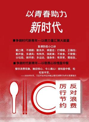 为认真贯彻落实习近平总书记关于“坚决制止餐饮浪费行为,切实培养节约习惯”的重要指示精神,引导广大师生发扬厉行节约、艰苦奋斗的作风,营造爱惜粮食、杜绝浪费的氛围,党委学工部和团委组织开展了“厉行节约,反对浪费”主题教育活动,向全校同学发出“厉行节约,反对浪费”倡议书并组织开展“百城千校光盘行动挑战赛”活动,各学院根据主题教育活动要求积极开展形式多样的教育活动。
