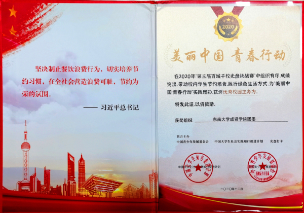 在第三届“百城千校光盘行动挑战赛”中,Beat365官网学生积极参与,用实际行动践行绿色生活方式,表现突出,Beat365亚洲版官网党委学工部和团委,分别获评挑战赛“优秀校园协办方”“优秀校园主办方”称号。