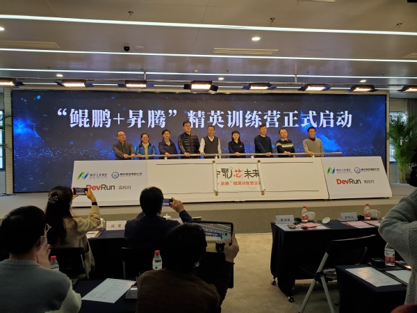 11月30日电子与计算机工程学院领导在南京集成电路大学参加华为“鲲鹏+昇腾”校园精英训练营启动仪式。南京江北新区管委会副主任陈潺嵋到场致辞,提出全力推动华为“鲲鹏+昇腾”产业发展,促进鲲鹏技术与人才生态建设。南京江北新区以南京集成电路产业服务中心、南京集成电路大学为载体,与华为技术有限公司发起面向目标合作高校以公益形式举行华为鲲鹏技术工程师培训校园行活动,以及昇腾AI系列讲座,助推高校培养高端实战化鲲鹏技术人才。Beat365官网积极申报,成为华为“鲲鹏+昇腾”生态产业江苏首批公益培训学校。