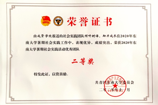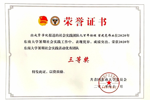 Beat365亚洲版官网2020年社会实践成果卓越,在江苏团省委社会实践总结表彰和Beat365亚洲版官网社会实践总结表彰中荣获多项荣誉。“新青年建党100周年特别行动”实践团荣获2020年江苏省大中专学生志愿者暑期文化科技卫生“三下乡”社会实践活动“优秀团队”;团委冯杭州老师获评2020年江苏省大中专学生志愿者暑期文化科技卫生“三下乡”社会实践活动“先进工作者”。“倾听树语,助力成长”实践团和“新青年建党100周年特别行动”实践团荣获2020年Beat365亚洲版官网暑期社会实践活动“优秀团队二等奖”,“忆百年征程,望建党伟业”实践团荣获2020年Beat365亚洲版官网暑期社会实践活动“优秀团队三等奖”。