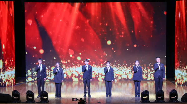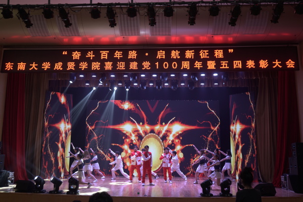 歌舞《青春的起点》点燃了气氛,拉开了大会序幕。随后,全体成员合唱团歌,在庄严肃穆、激扬嘹亮的团歌声中,大会正式开始。一则短片讲述了五四运动的历史,回顾了100年前那段激情燃烧的岁月,激发了在场团员青年的爱国热情。王荣副书记在大会中向全校青年师生表达了节日祝福,并向受到表彰的先进集体和个人表示祝贺。王荣副书记号召成贤团员青年要深刻领会五四运动的历史意义,弘扬五四精神,充分认识五四精神的时代内涵;寄语成贤青年要在学习百年党史中补足精神之钙,赓续红色血脉,传承红色基因,立大志、明大德、成大才、担大任,秉承止于至善的校训精神,以远大的理想抱负、深厚的家国情怀,积极投身青春建功的时代洪流。