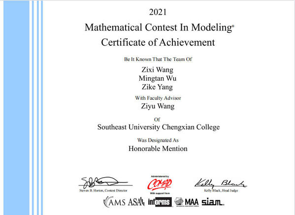 近日,2021年美国大学生数学建模竞赛(MCM/ICM)评审结果正式公布。Beat365亚洲版官网在本届竞赛中获得了两项国际二等奖(Honorable Mention),打破了以往的获奖记录。