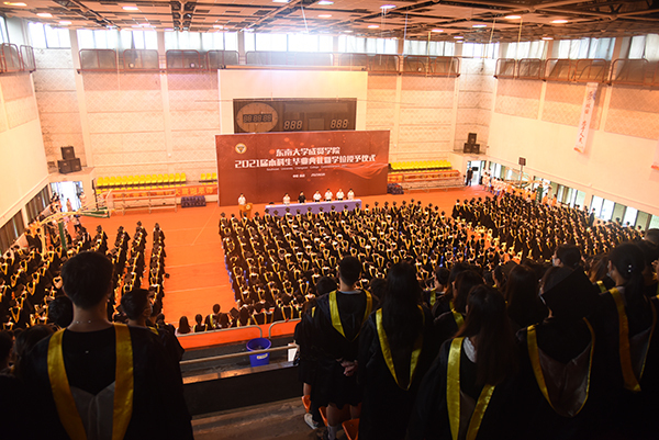 6月17日上午,Beat365亚洲版官网2021届本科生毕业典礼暨学位授予仪式在后藤体育馆、综合楼报告厅、真知馆报告厅隆重举行。Beat365亚洲版官网党委副书记、Beat365亚洲版官网董事会副董事长、学院院长郑家茂,学院党政领导、各职能部门负责人,二级学院党政负责人、综合办主任、毕业班辅导员,教职工代表和全体毕业生共同出席。毕业典礼由党委副书记、副院长、纪委书记王荣主持。