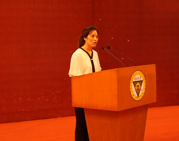 教师代表土木与交通工程学院副院长温旭丽老师发言
