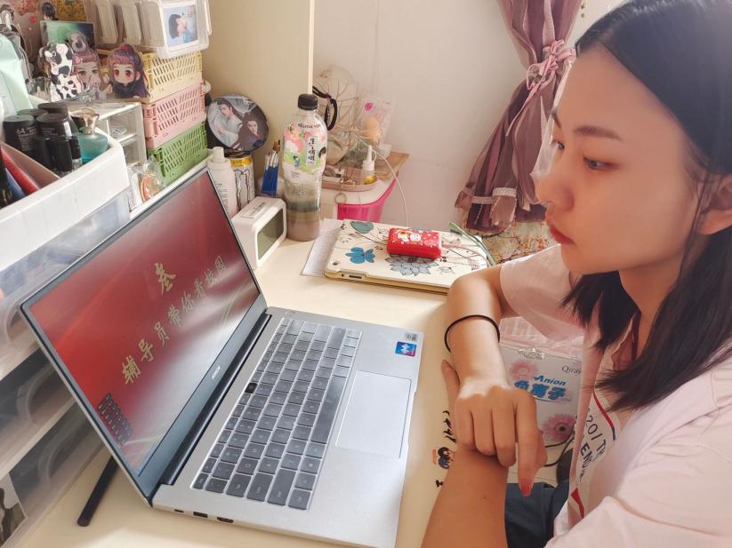 第三个环节是“辅导员带你看校园”,通过新生辅导员“云主播”的方式,带领大一新生详细的浏览了图书馆、新生宿舍和大学生活动中心。直播过程中,新生们频繁的与老师进行线上互动表达激动的心情,纷纷表示希望能早日进入校园,开启大学新生活。