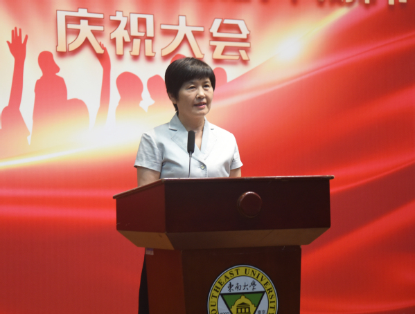 常务副院长许映秋首先致辞。她在讲话中代表学校党政向奋战在线上、线下开展教学、管理工作的全体教职员工致以崇高的敬意与衷心的感谢。同时,她希望全体教职工不忘初心,厚植爱国情怀;立德树人,勇担育人使命;创新学习,与学院发展同向同行。