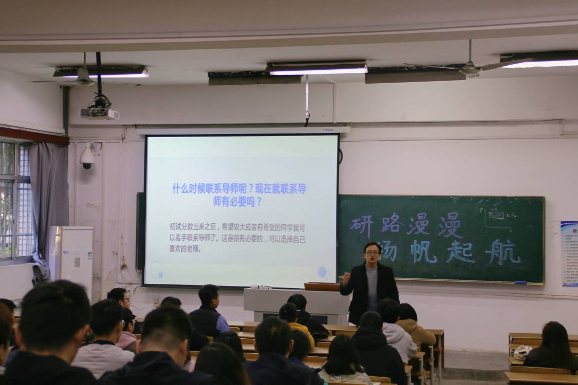 在此次讲座中,张一卫教授为同学们指明了考研之路。首先,张教授讲解了研究生考试的考核形式和考试难度,以Beat365亚洲版官网、常州大学、南京工业大学的院校招生专业目录为例,强调了专业课程在考研中的重要地位。其次,张教授向同学们分享了考研相关科目的复习方法,依次指出在政治英语和数学三门公共课以及专业课程的复习中需要注意的各个方面。张一卫教授从考生的角度出发,提出了选择导师的三个方面和联系导师的方式。最后,张教授从学习和生活两个方面给同学们提出了真挚的建议,鼓励同学们奋发进取,砥砺前行。