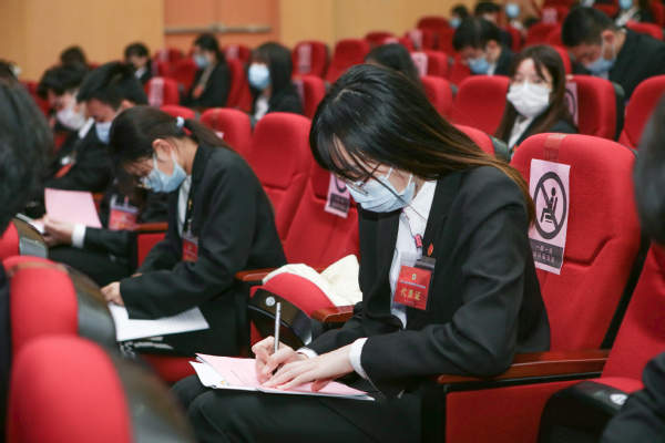 正式会议阶段,与会代表先后审议并通过了《第三次学生代表大会常任代表会议工作报告》《第十六届学生会主席团工作报告》《学生会章程修正案(草案)》;大会主席团带领全体代表学习了党的十九届六中全会精神和全国学联《关于学联学生会工作人员改进作风服务同学的若干规定》文件精神;大会根据《第四次学生代表大会选举办法》文件规定,秉持公平公正公开原则,采用差额选举的方式,选举产生了新一届常任代表会议成员、学生会主席团成员。会议在全体代表激昂的《国际歌》歌声中闭幕。