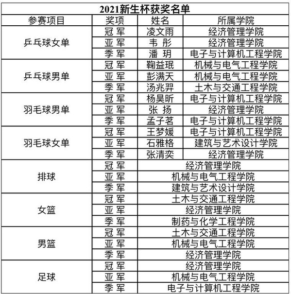 本届新生绽放季“三走”系列活动自11月启动以来,经过校、院学生会和各相关学生社团的共同努力,累计组织3000余人次参与篮球、足球、排球、乒乓球、羽毛球、趣味运动会等六项精品活动,有效提升了2021级学生体质,培养了同学们拼搏进取的体育精神和积极乐观的生活态度。今后,校团委将继续探索促进大学生身心健康的有效途径,大力推动学校阳光体育运动长效机制建设。