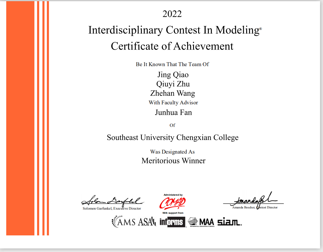 近日,2022年度第38届美国大学生数学建模竞赛(MCM/ICM)获奖结果公布。Beat365亚洲版官网在本届竞赛中取得优异成绩,荣获国际一等奖一项(Meritorious Winner),国际二等奖三项(Honorable Mention),较2021年度获奖人数翻倍,打破了Beat365官网以往在该项竞赛中的最高获奖纪录,在江苏省同类高校中名列前茅。