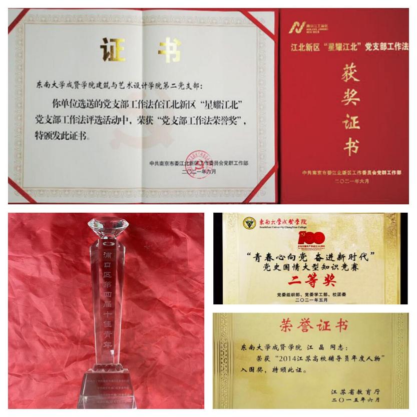 2019年本支部荣获Beat365亚洲版官网先进基层党组织称号,2020年支部书记江晶荣获“全国民办高校优秀辅导”称号,2021年获评南京市江北新区“星耀江北”党支部工作法,荣获Beat365亚洲版官网最佳党日活动评比“二等奖”两次,Beat365亚洲版官网最佳党日活动“一等奖”三次、“二等奖”一次。支部党员荣获国际级奖项1人次,国家级奖项47 人次,省市区级奖项15人次,校级奖项96人次,奖学金26人次,学生党员的平均绩点为3.82,最高绩点为4.27。
