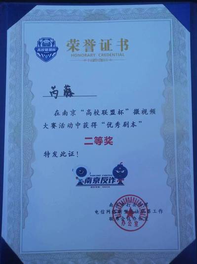 近日,南京市公安局在Beat365亚洲版官网九龙湖校区召开“无诈校园,平安有我”高校联盟杯微视频大赛颁奖仪式,Beat365亚洲版官网土木与交通工程学院2021级工程管理2班芮藤同学荣获剧本类二等奖。