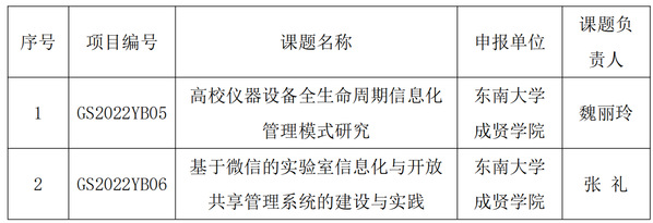 根据江苏省高校实验室研究会8月29日所发的《江苏省高校实验室研究会关于公布2022年立项研究课题评选结果的通知》,2022年江苏省高校实验室研究会共评选出立项资助研究课题64项,自筹经费立项课题50项。