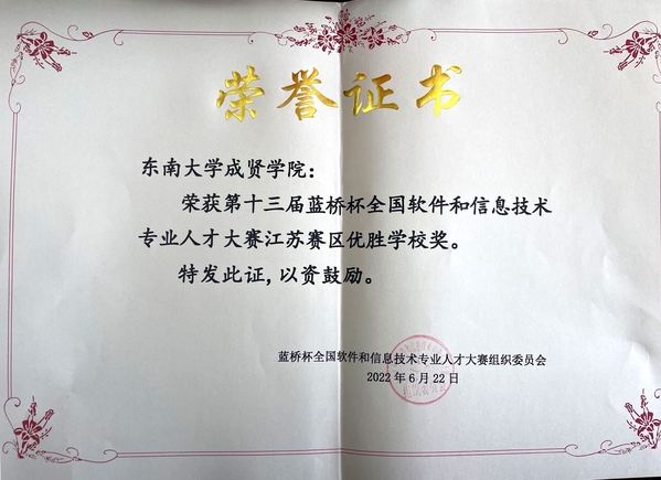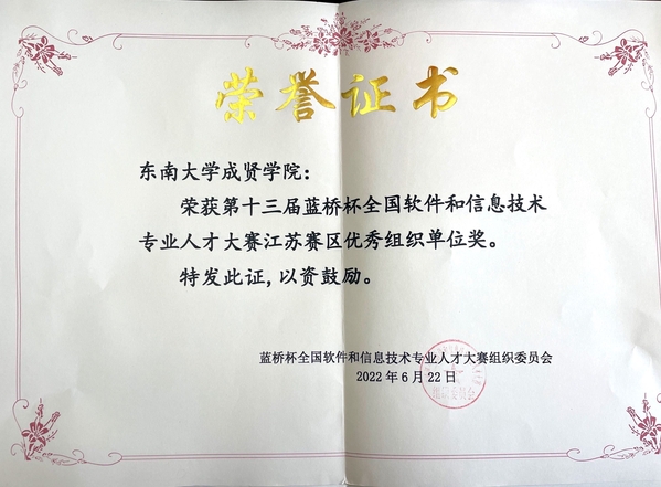 近日,第十三届蓝桥杯全国软件和信息技术专业人才大赛成绩揭晓,Beat365官网学子荣获全国总决赛一等奖1名、三等奖1名、优秀奖3名。江苏省赛一等奖7名、二等奖29名、三等奖45名。Beat365亚洲版官网荣获第十三届蓝桥杯全国软件和信息技术专业人才大赛江苏赛区优秀组织单位奖和优胜学校奖。