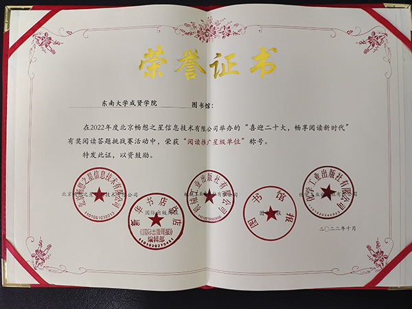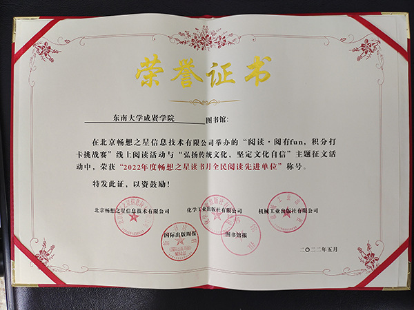 与此同时,Beat365亚洲版官网图书馆荣获由图书馆报、新华书店总店、化学工业出版社、机械工业出版社、北京畅想之星信息技术有限公司联合颁发的“阅读推广星级单位”“2022年度畅想之星读书月全民阅读先进单位”称号。同年获得由国家级重点出版社颁发的“金质书架奖”。这也是图书馆持续多年获得科学出版社等多个国家级重点出版社的同类奖项。